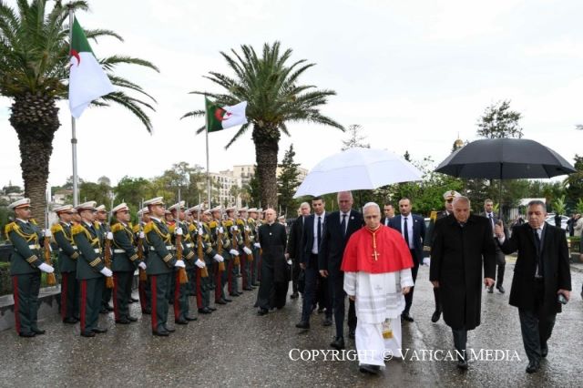 Algeria là một đất nước vĩ đại, với lịch sử lâu đời giàu truyền thống, bắt nguồn từ thời Thánh Augustinô và thậm chí trước đó nữa. Đó cũng là một lịch sử đầy đau thương, được đánh dấu bởi những thời kỳ bạo lực. Tuy nhiên, chính nhờ tinh thần cao thượng đặc trưng của anh chị em – điều mà tôi cảm nhận vẫn còn sống động ngay cả ở đây và bây giờ – anh chị em đã có thể vượt qua những thử thách này với lòng dũng cảm và sự chính trực.