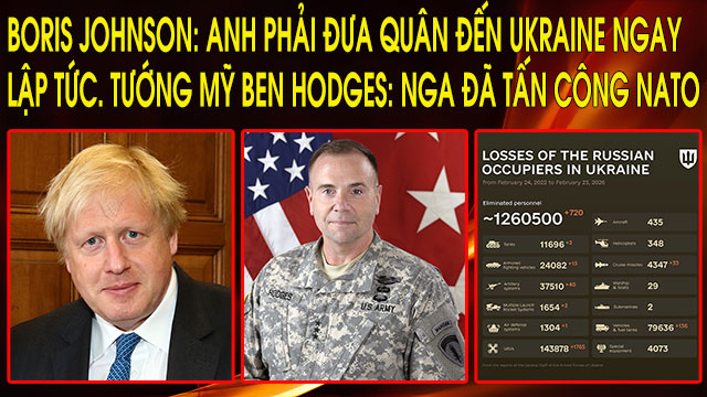 - Boris Johnson: Anh phải đưa quân đến Ukraine ngay lập tức. Tướng Mỹ Ben Hodges: Nga đã tấn công NATOVietCatholic Media