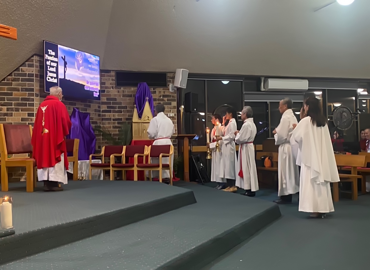 Hôm nay, mỗi người chúng ta ngắm đàng Thánh Giá với hết cả tâm tình chia sẻ đau khổ tột cùng của Đức Chúa Ki-tô, chính Ngài đã gánh vác cây thánh giá là tội lỗi của tôi, của anh, của chị và của cả nhân loại trên đôi vai của mình, Ngài đã mệt nhọc vác đi trên quảng đường dốc đá để nơi chịu đóng đinh để nhân loại có đường sống, Ngài đã chịu đóng đinh trên Thánh Gía để cho nhân loại khỏi bị quăng vào lửa thiêu đốt đời đời.