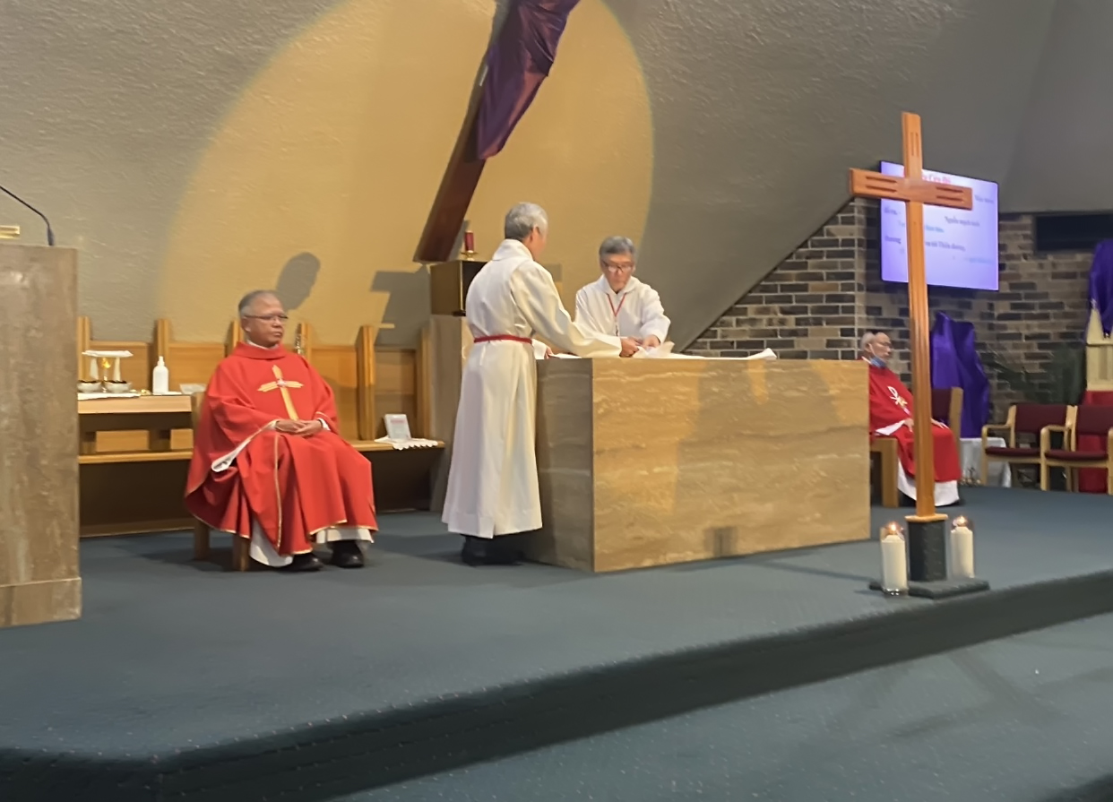Hôm nay Giáo Hội mời gọi chúng ta giữ chay kiêng thịt, để chia sẻ những khổ hình mà Đức Chúa Giê-su Ki-tô đã chịu vì tội chúng ta, cao điểm của ngày hôm nay chính là giây phút này đây: suy tôn Thánh Giá Đức Chúa Giê-su Ki-tô.