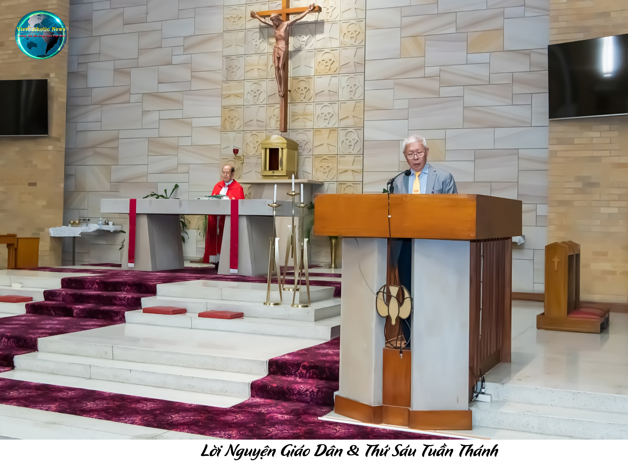 Tại Giêrusalem nơi Chúa Giêsu đã trải qua những giờ phút cuối cùng của Ngài trong cuộc sống dương thế, vào lúc 8 giờ sáng ngày Thứ Sáu Tuần Thánh 7 tháng Tư, Đức Tổng Giám Mục Pierbattista Pizzaballa là Thượng Phụ Công Giáo Nghi Lễ Giêrusalem, Đức Tổng Giám Mục Tito Yllana là khâm sứ Tòa Thánh tại Giêrusalem và hơn 200 linh mục đã cử hành thánh lễ Suy Tôn Thánh Giá tại nhà thờ Mộ Thánh.