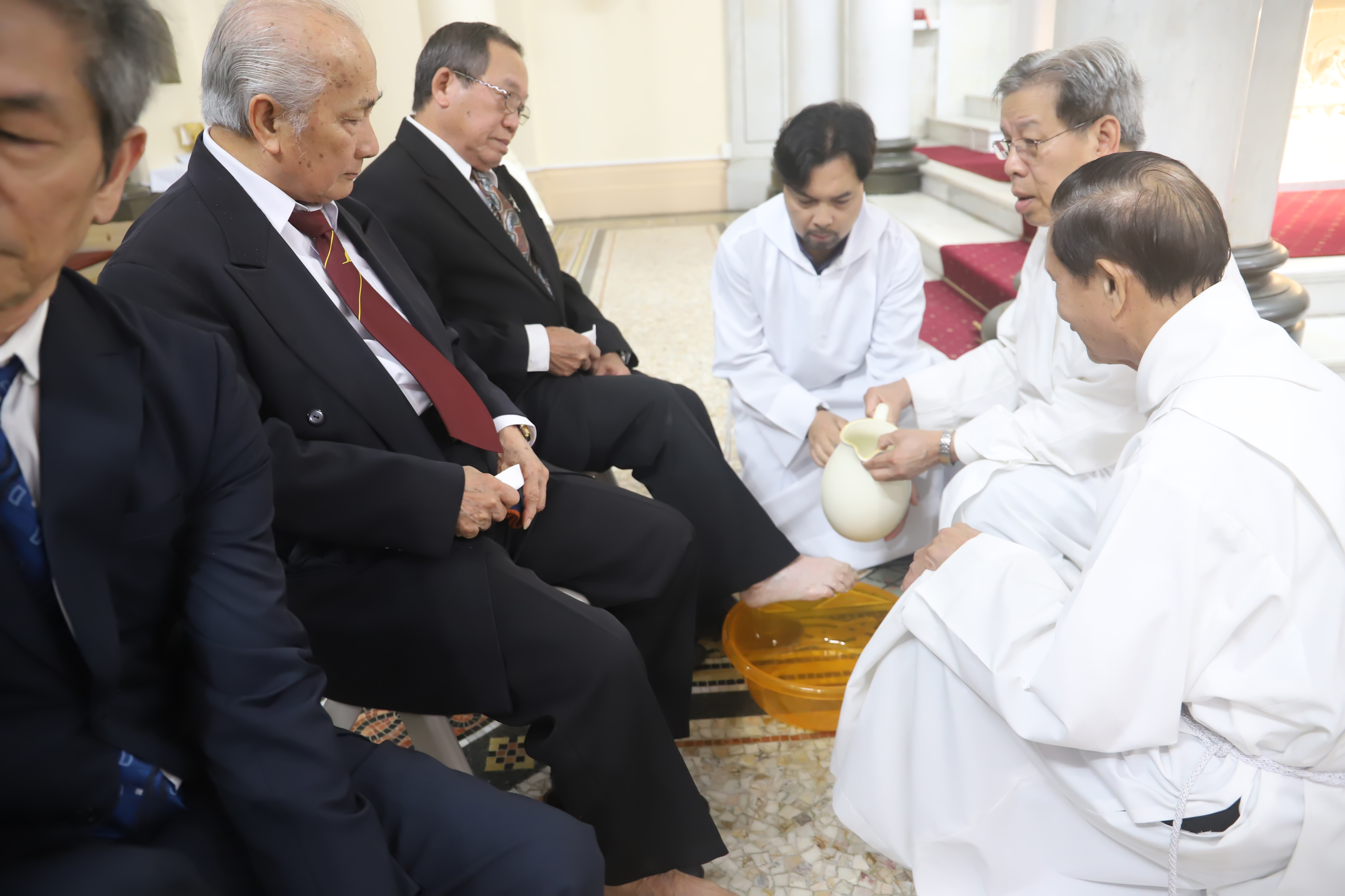 Một tu sĩ dòng Phanxicô, xức dầu chân dung của Đức Kitô trong khi nhắc lại lời Phúc Âm “Ông Giuse người xứ Arimathea là một môn đệ của Chúa Giêsu đã xin Philatô cho ông được tháo xác Chúa xuống khỏi thập giá. Philatô cho phép, và ông đã đưa xác Chúa xuống, bọc trong vải liệm, với các loại dầu thơm theo phong tục chôn cất của người Do Thái”.
