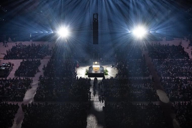 Nhưng trong khi vở kịch chính trị tiếp tục, 50,000 người Công Giáo ở Indianapolis và hàng ngàn người khác theo dõi Đại hội Thánh Thể Quốc gia (NEC) từ xa dường như không hề thay đổi, sự chú ý của họ rõ ràng không phải vào chính trị đảng phái, mà là vào nguồn gốc và chóp đỉnh đức tin của họ.