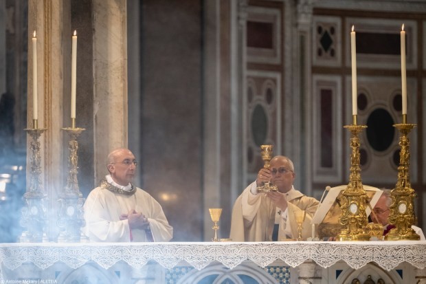 Ý thức sự vĩ đại của mầu nhiệm này cũng tỏa sáng trong vẻ lộng lẫy nghệ thuật của tòa nhà, với mười hai bức tượng lớn của các Tông đồ ở gian giữa, Đức Giáo Hoàng chỉ ra rằng điều này hướng đến một góc nhìn tâm linh, "giúp chúng ta vượt qua vẻ bề ngoài, để hiểu rằng mầu nhiệm Giáo hội không chỉ là một nơi chốn đơn thuần, một không gian vật chất, một tòa nhà bằng đá."