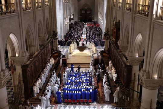 Solène Tadié, của CNA, ngày 7 tháng 12 năm 2024 tường trình rằng Cửa của Nhà thờ Đức Bà Paris mới được phục hồi đã chính thức mở cửa trở lại cho công chúng trong một buổi lễ vào tối thứ Bảy, chỉ hơn năm năm sau khi một đám cháy tàn phá mái nhà, khung và đỉnh tháp của công trình mang tính biểu tượng này.