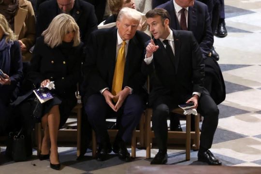 Tổng thống Pháp Emmanuel Macron, người ban đầu được lên lịch phát biểu tại sân trước của nhà thờ để tôn trọng luật tách biệt giữa nhà thờ và nhà nước, đã kết thúc bằng bài phát biểu bên trong tòa nhà do thời tiết xấu, như đã thông báo trước đó trong một thông cáo báo chí từ Tổng giáo phận Paris.