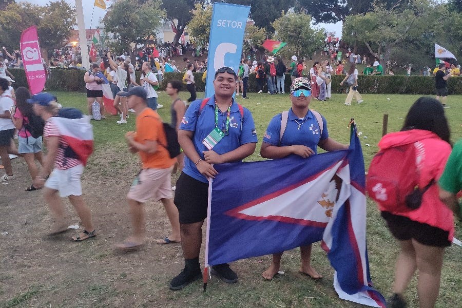 Những người hành hương cầm cờ Đông Timor tại Ngày Giới trẻ Thế giới ở Lisbon, Bồ Đào Nha, vào ngày 1 tháng 8 năm 2023. (Ảnh: Filipe D’Avillez/Pillar Media)