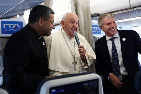 Trên chuyến bay của Đức Giáo Hoàng, ngài chỉ xuất hiện thoáng qua - chưa đầy hai phút - trước đoàn các nhà báo đi cùng ngài.