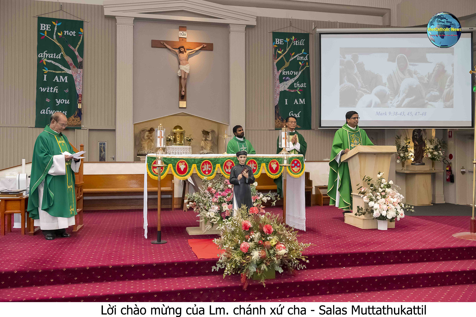 Mở đầu thánh lễ cha Paul Văn Chi giới thiệu quý cha đồng tế thánh lễ hôm nay cùng với Parish Council Panania, Sơ Thư Ký, Ban Thường Vụ và các Ban Mục Vụ các Giáo Đoàn. Sau đó cha Chánh Xứ Panania chào mừng mọi người, ngài nói chúng ta cùng là di dân và chào đón Cộng Đồng Công Giáo Việt Nam tới cùng sinh hoạt và chia sẻ tình yêu thương với nhau, chính Chúa Giêsu cũng là di dân, sinh ra một chỗ và sinh sống, rao giảng một chỗ khác, đăc biệt cha nói tiếng việt nam “Kính Chào Quí Vị” như là một cử chỉ hoà nhập cùng mọi người.