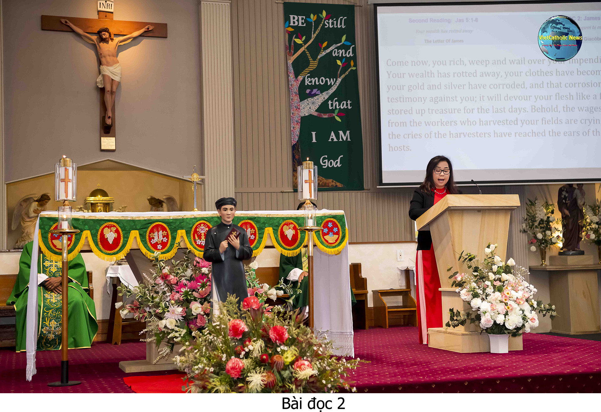 Lúc 11.15am một Thánh Lễ đồng tế gồm có cha chánh xứ: Salas Muttathukattil, cha phụ tá: Vijay Kumar, cha Paul Chu Văn Chi Tuyên Úy Cộng Đồng Công Giáo Việt Nam chủ tế Thánh Lễ, cha FX Trần Tuấn là cha khách cùng đồng tế. Từ cuối nhà thờ, 2 thừa tác viên Thánh Thể, với bình hương và Thánh Giá, theo sau là 4 em thiếu nhi Cung Thánh tay cầm nến, 2 thừa tác viên đọc Sách Thánh, sau cùng là 4 cha đồng tế. Tiến lên bàn thờ đoàn phục vụ cùng bái lạy bàn thờ. Cha Chủ tế Paul Văn Chi dâng hương bàn thờ và tượng Thánh Andrê Phú Yên.