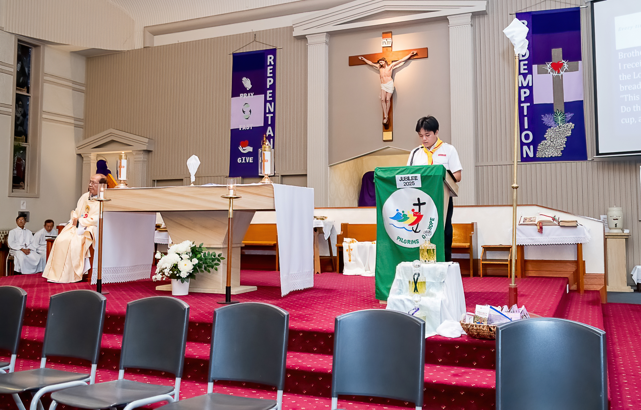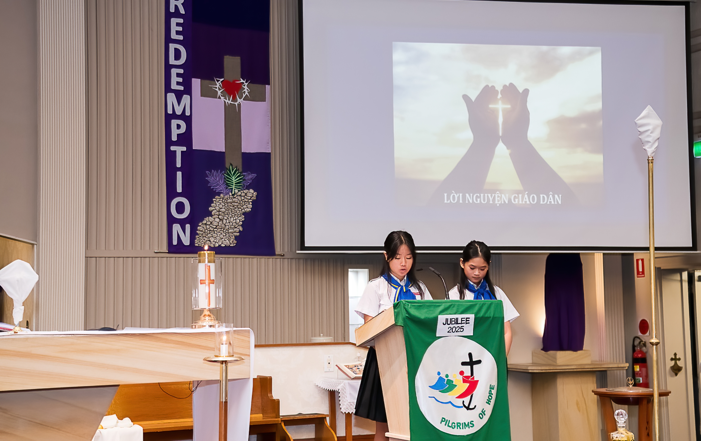 Trước khi kết thúc Thánh Lễ một đại diện Giáo Đoàn lên nhắc mội người ngày mai thứ 6 ăn buộc chay và kiêng thịt, cũng như ngày mai có ngắm đàng Thánh Giá tại trung tâm Bringelly lúc 10am, sau cùng một em Thiếu Nhi Thánh Thể lên cám ơn quý ông bài các anh các chị đã giúp các cháu có phương tiện sinh hoạt trong Giáo Đoàn.
