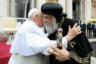 Đức Thánh thiện Tawadros đã nhận lời mời của tôi đến Rôma để cùng tôi cử hành lễ kỷ niệm 50 năm cuộc gặp gỡ lịch sử của Thánh Phaolô VI và Giáo hoàng Shenouda III vào năm 1973. Đó là cuộc gặp gỡ đầu tiên giữa một Giám mục Rôma và một Thượng phụ của Giáo hội Chính thống Ai Cập, cao điểm là việc ký kết một tuyên bố chung đáng nhớ về Kitô học, chính xác vào ngày 10 tháng Năm. Để tưởng nhớ sự kiện này, Đức Thánh thiện Tawadros đã đến thăm tôi lần đầu tiên vào ngày 10 tháng 5 mười năm trước, một vài tháng sau cuộc bầu cử của ngài và của tôi, và đề xuất cử hành “Ngày của tình bạn Công Giáo-Coptic” vào mỗi ngày 10 tháng 5, mà từ đó chúng tôi đã cử hành hàng năm. Chúng tôi gọi điện cho nhau, chúng tôi gửi lời chào, và chúng tôi vẫn là anh em tốt, chúng tôi không cãi nhau!