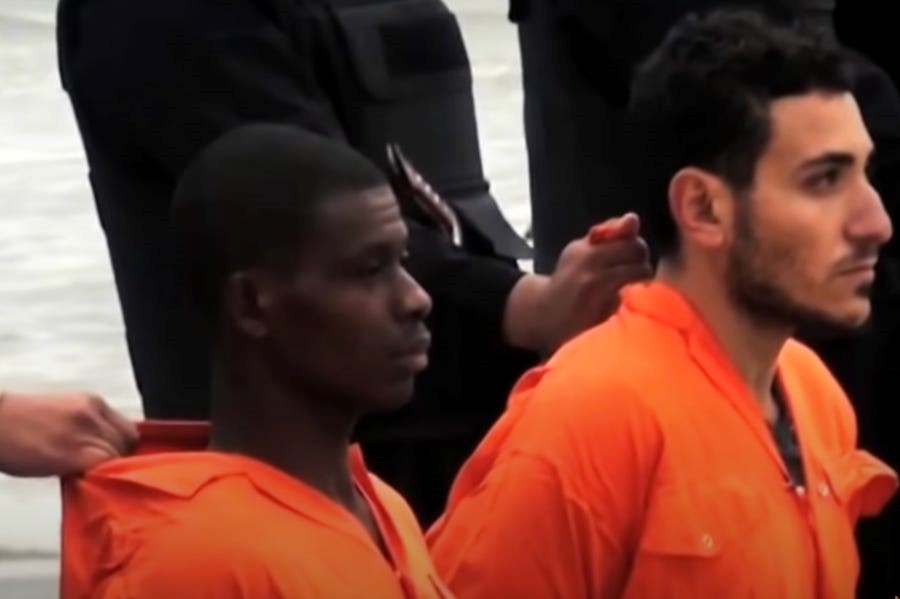 21 người xếp hàng quay lưng về phía những con sóng, mỗi người có một thành viên Nhà nước Hồi giáo phía sau. Khi họ bị buộc phải quỳ xuống, máy quay lia qua họ, cho thấy Ayariga đang quỳ gối thanh thản trước thủ lĩnh, kẻ duy nhất trong số những kẻ khủng bố không mặc đồ đen.