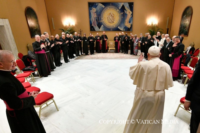 Anh chị em thân mến, chúng ta hãy mang ước mơ này trong lòng và cầu xin sự sáng tạo của Chúa Thánh Thần, để ánh sáng Tin Mừng và hiệp thông có thể chiếu sáng rực rỡ hơn. Tôi nhắc lại lời cảm ơn của tôi vì sự phục vụ của anh chị em và tôi chúc lành cho anh chị em, xin anh chị em cầu nguyện cho tôi.