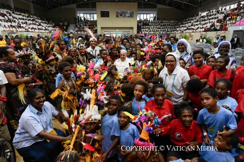 Đức Giáo Hoàng Phanxicô đã gặp các em nhỏ sau khi có cuộc gặp với Toàn quyền Papua New Guinea và phát biểu trước các nhà chức trách dân sự vào sáng sớm hôm đó.