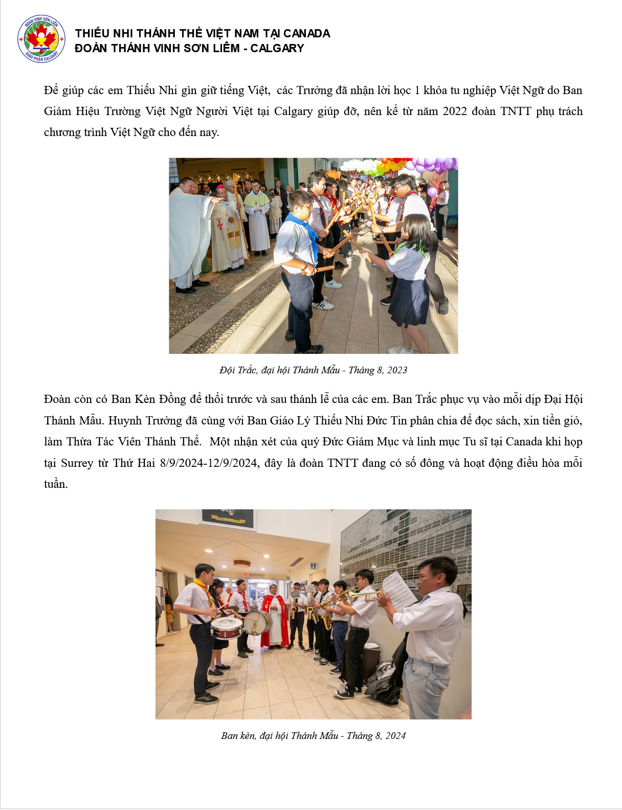 Thiếu Nhi Thánh Thể Việt Nam Tại Canada (Galgary)