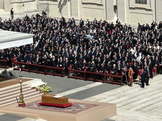 Thánh lễ tang của Đức Giáo Hoàng Phanxicô hiện đang diễn ra tại Quảng trường Thánh Phêrô ở Thành phố Vatican, nơi hàng chục nghìn người thương tiếc đã tụ tập để tiễn biệt vị giáo hoàng thứ 266.